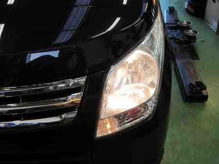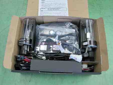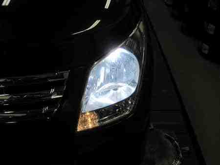 純正のハロゲンランプは暗く・色味も肌色のような色で変えたいということで明るさと色味が白いHIDに変更しました。