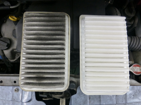 エアクリーナーとは、空気中のゴミを取り除き、エンジン内に綺麗な空気を送り込む役割をしています。エアクリーナーが汚れているとエンジンの不調につながり走行性能の悪化や燃費の悪化を引き起こしますので定期的な交換が必要です。交換時期の目安は、1万~2万kmごとに交換です。