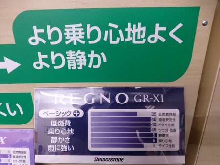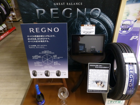 レグノはブリヂストンのハイパフォーマンスフラッグシップタイヤ。ラテン語で「王者」という意味の単語から名付けられています。直進安定性、ドライ性能、ウェット性能、環境性能、静粛性脳、快適性能の6つの性能を高次元でバランスさせている。という点を強くうたっています。