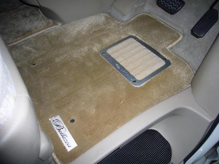 次にフロアーマット。こちらは【ベレッツァ】の車種専用設計タイプをセッティング。毛足が長く、足を置いた瞬間に心地良さが伝わってきます。何より高級感がアップしますね。