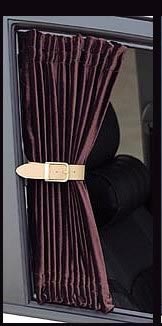 最後にカーテン。【エルドラード】のドレッシーカーテンを取付。カラーは、ブラック・ブラウン・アイボリーの3色から選べます。そしてカーテンベルトもブラウン・アイボリー・レッド・ブラックの4色から選べちゃいます。これなら思うままのコーディネートが出来ますね。ちなみにYさんは写真左から3枚目の組み合わせ(カーテン ブラウン・ベルト アイボリー)をチョイス。実際にYさんのお車に取り付けた画像が無いのが申し訳ないです(^^;