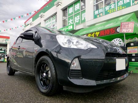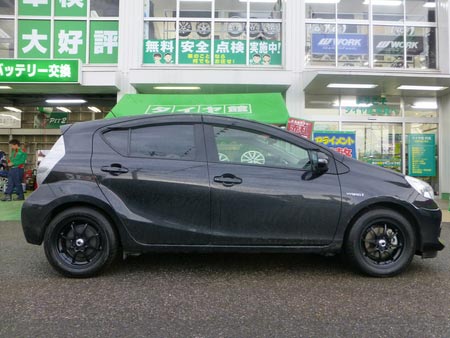 スタイリッシュな外観で、素のままでもオシャレなアクアですが、「もうちょっと車高を下げてみたら・・・」とか、「ここにこんなエアロをつけたら・・・」なんて考えてしまうのは、素のデザインが優れているからでしょうか?そしてやっぱり外せないのは足元のホイール。ホイール一つでお車の印象はガラッと変わる物ですが、今回Kさんが選んだのはこのホイールです!