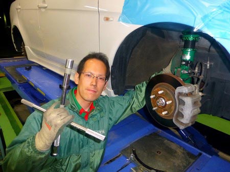 写真では私(隅内)がドヤ顔で写っていますが、作業するたびに思うことは、やっぱりTEINは高品質だな、という事。車高調整のネジ部が特殊コーティングされているので、サビに強い。スプリングシートもアルミ鍛造製なので、度重なる車高調性作業でも傷みにくいんです。こういった一つ一つの品質の良さって、実は作業する立場となると本当にありがたいんですよ!安心してオススメできるポイントのひとつでもあります。