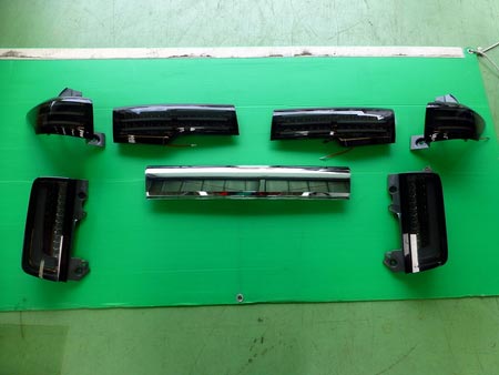写真二枚目が純正テール。三枚目が交換後・消灯時。そして四枚目が点灯時、となります。