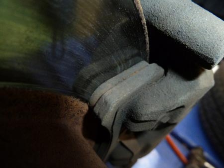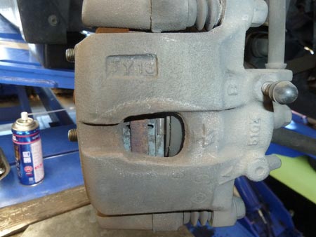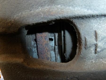 裏側はブレーキ キャリパーの側面に穴が空いているのでそこから確認することができます。