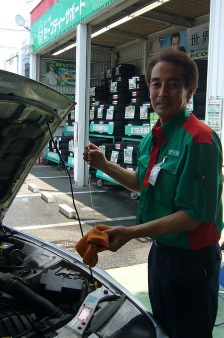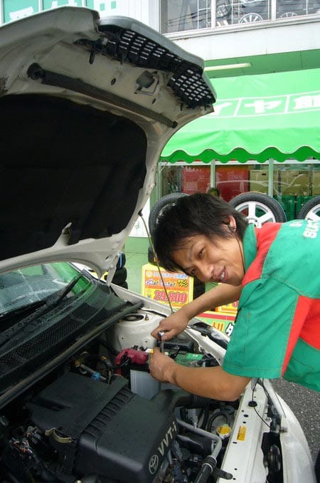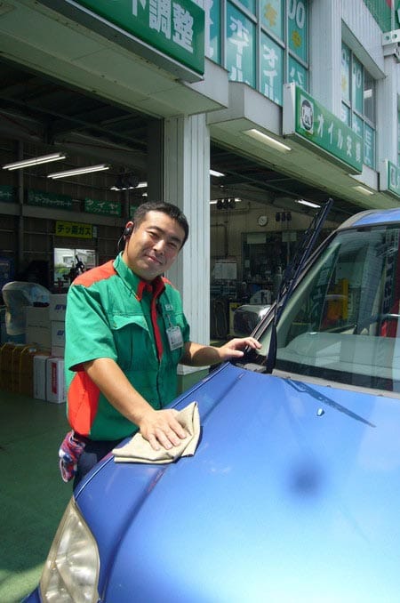 お仕事内容は、タイヤ販売、交換はもちろんオイル交換や各種パーツ取付、