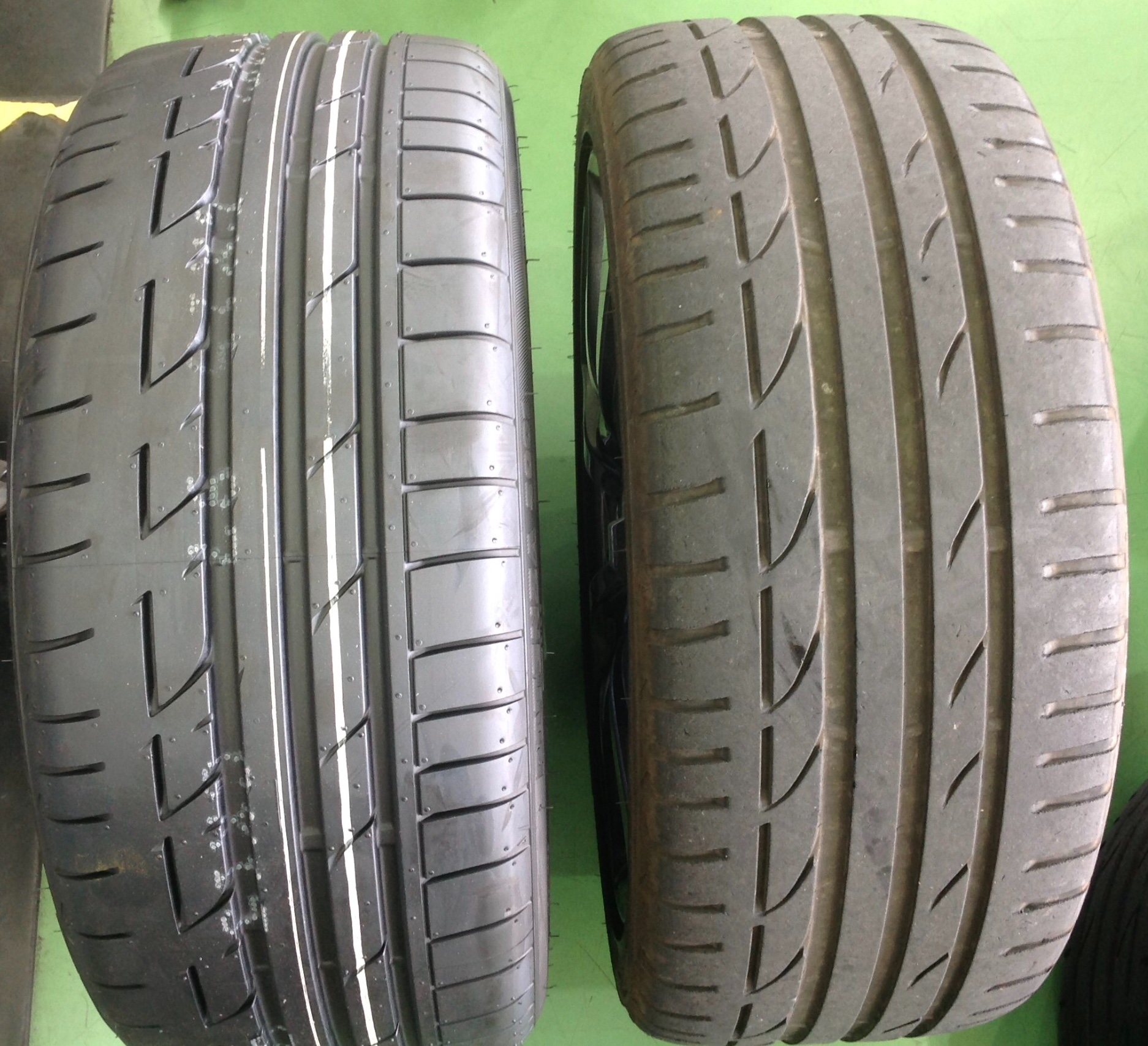 (画像はいずれのタイヤも左側がOUT側、右側がIN側です)