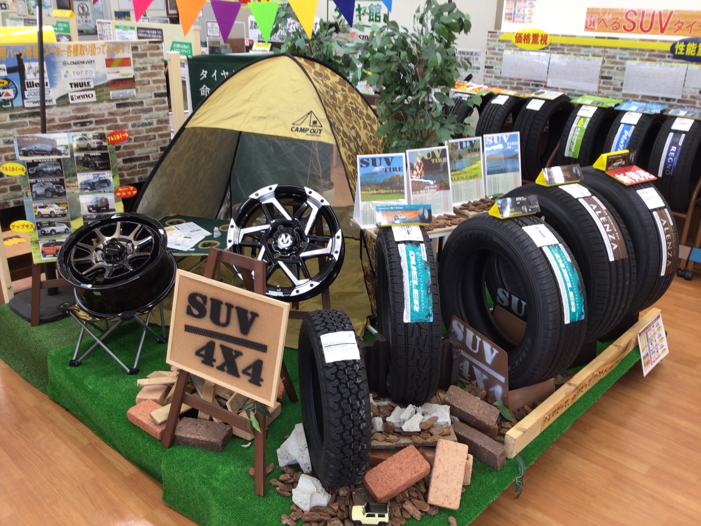 タイヤ館安城店では、SUV・4X4コーナーが充実。