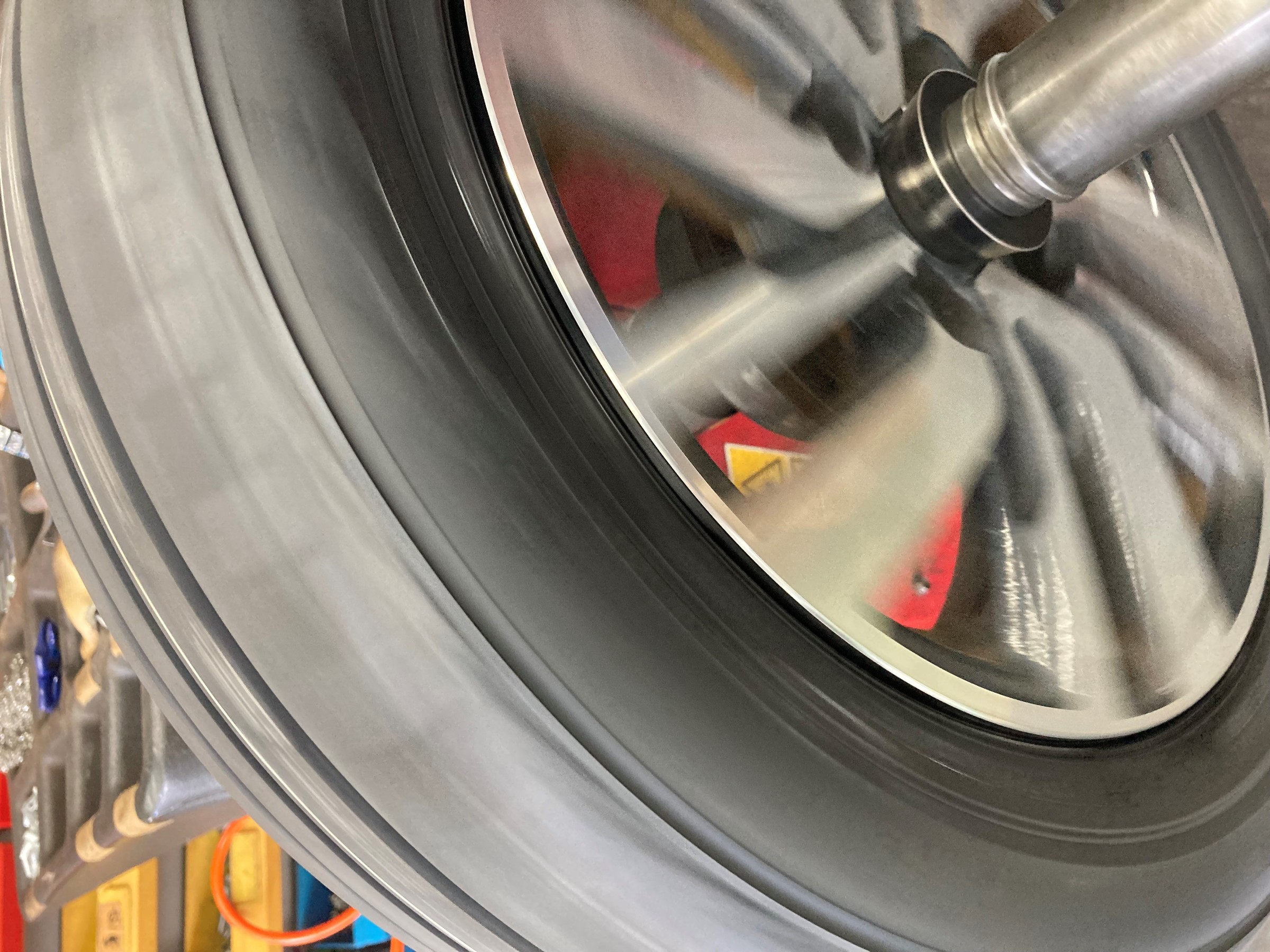 ホイールのリム部に付着したタイヤの跡を削り落とします。
