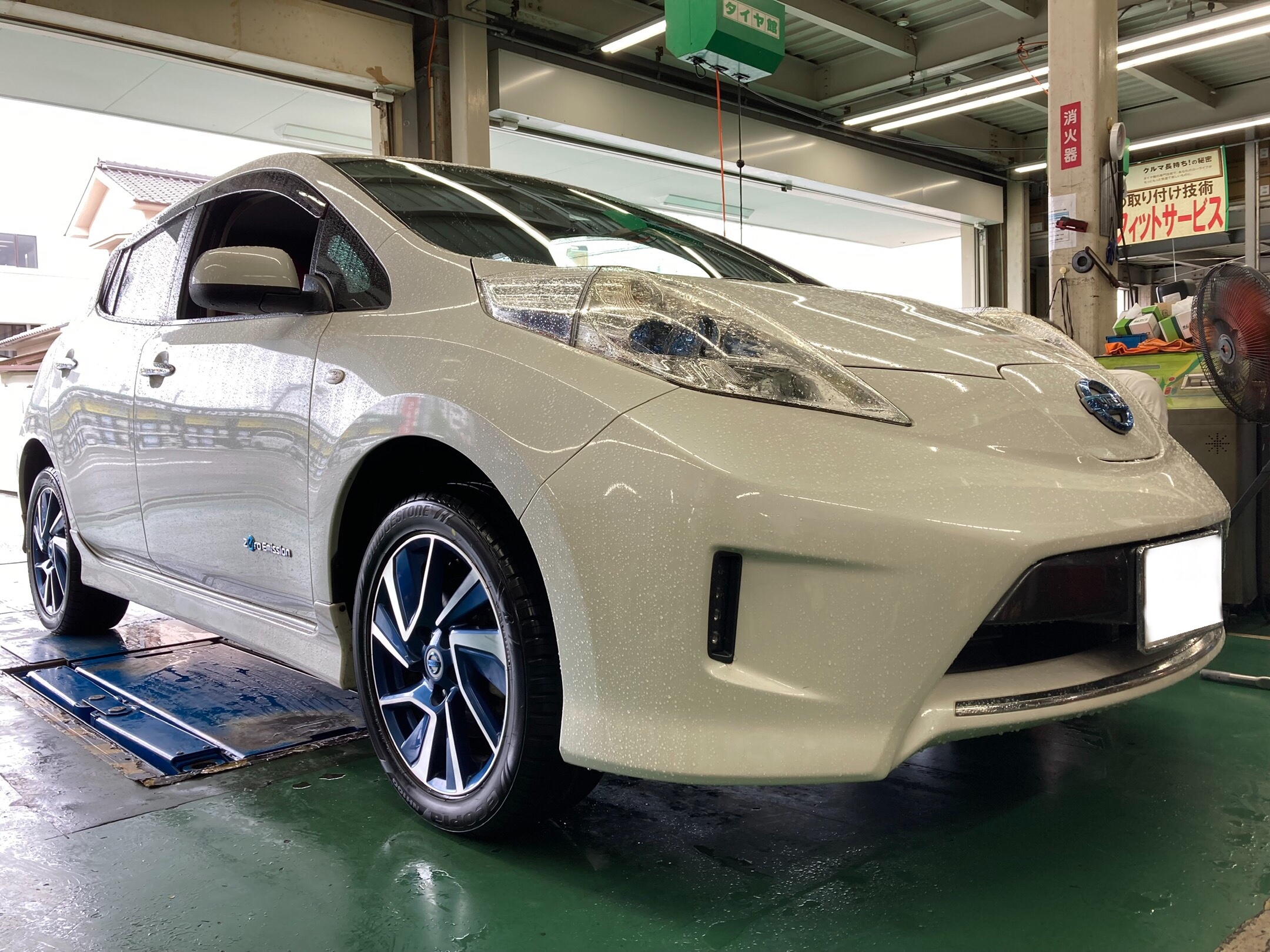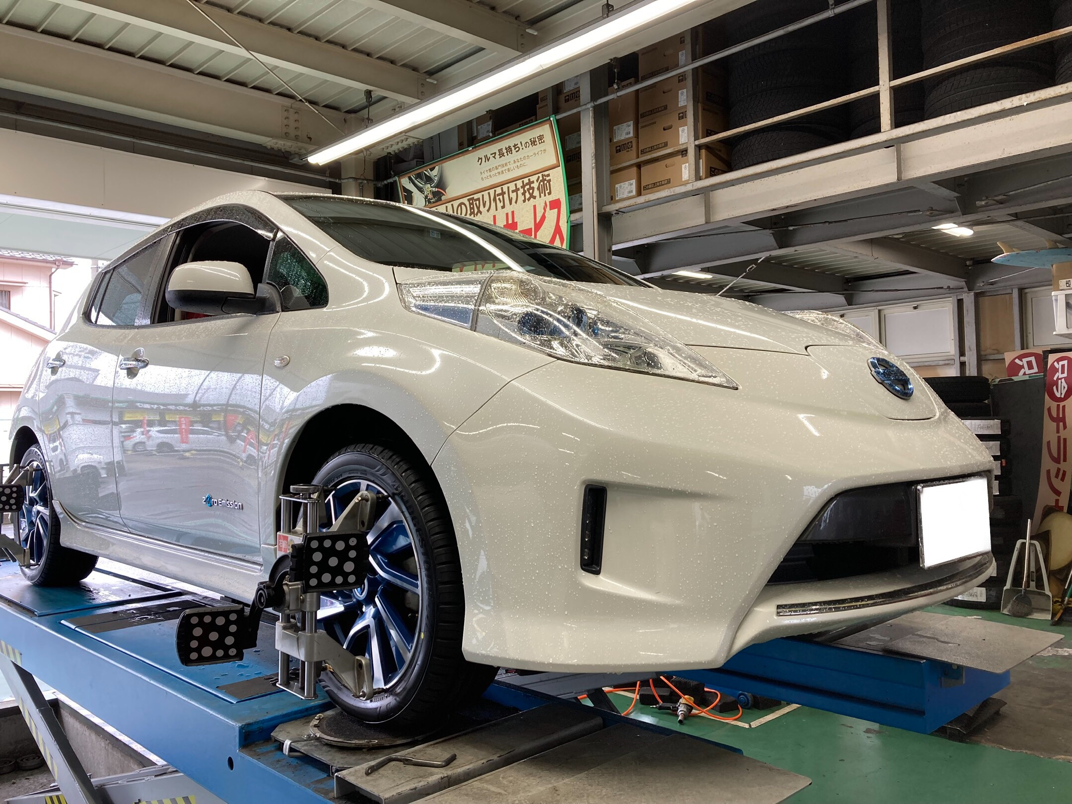 タイヤ交換作業+アライメント調整作業 日産・リーフ