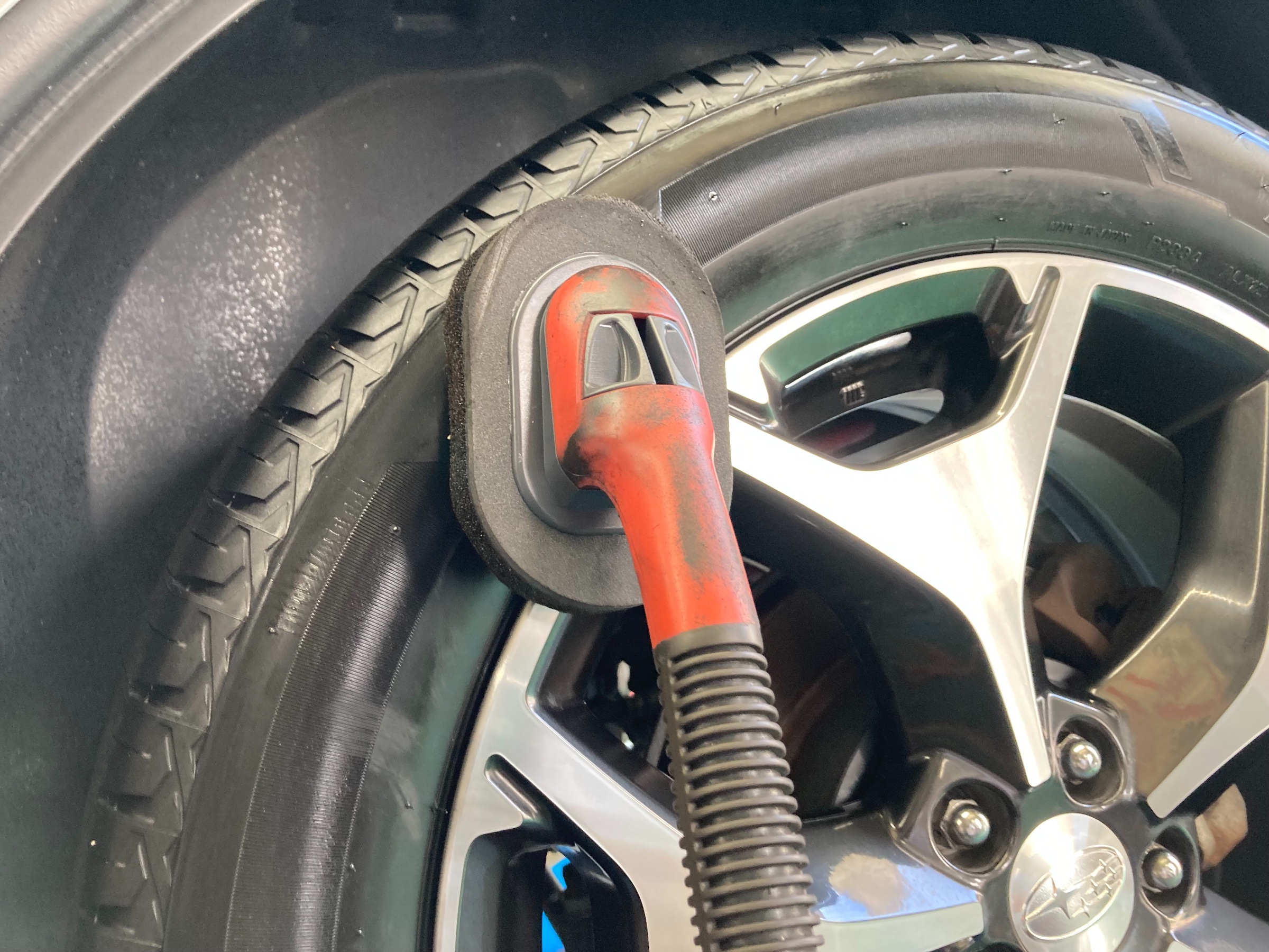 ↓ タイヤワックスをタイヤのサイド部に塗って