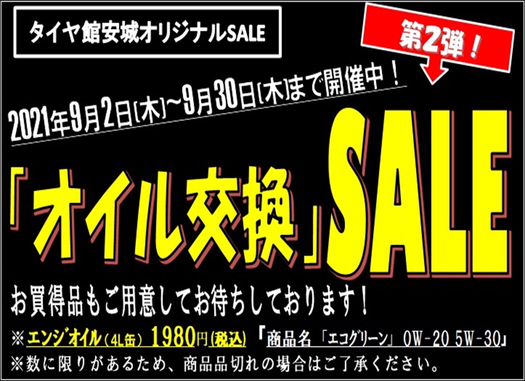 タイヤ館安城店でエンジンオイル交換ご利用のみなさま