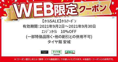 タイヤ館安城店ではWEB限定クーポンのご利用を