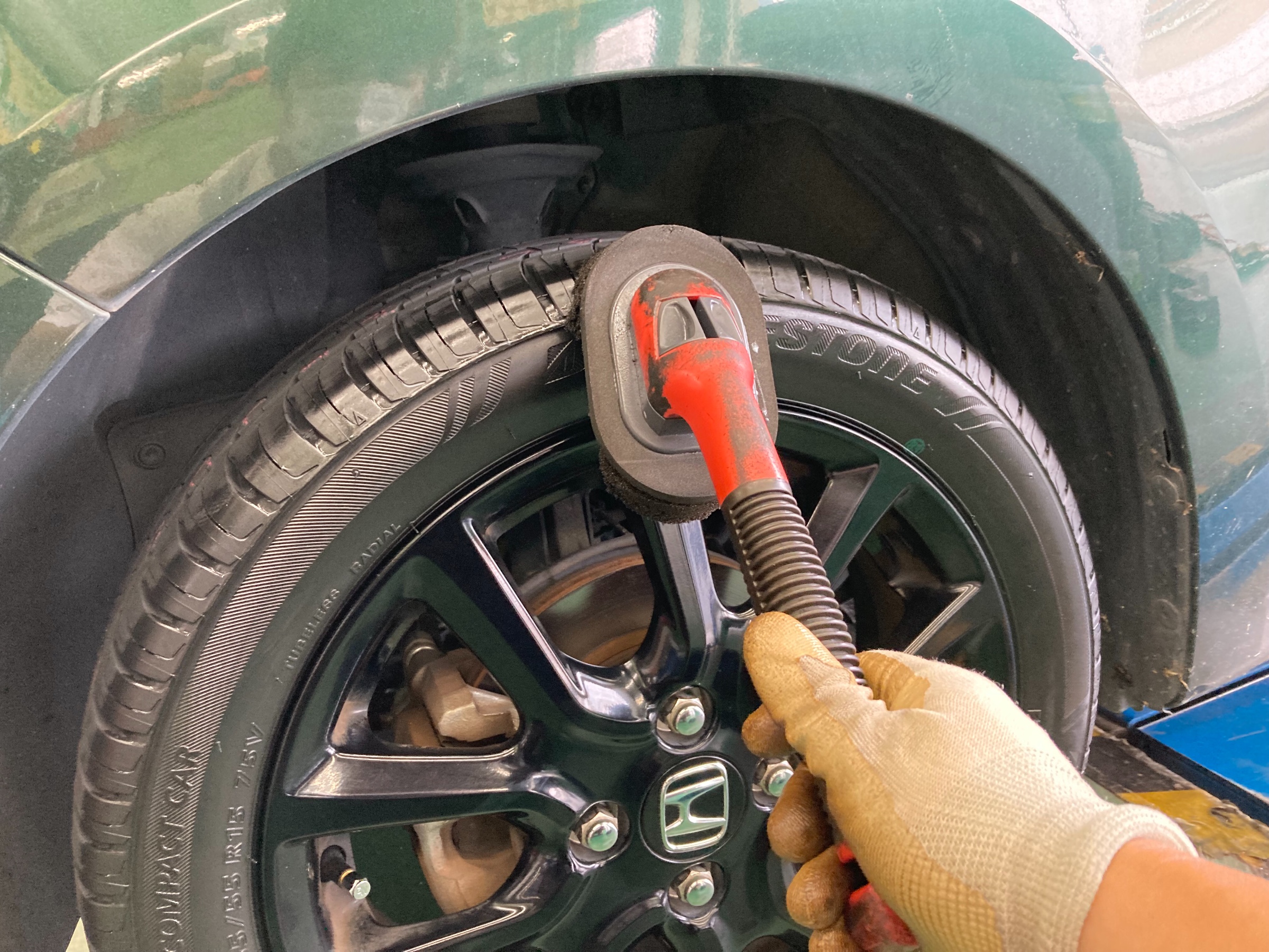 ホイールのリム部に付着したタイヤの跡を削り落とします。