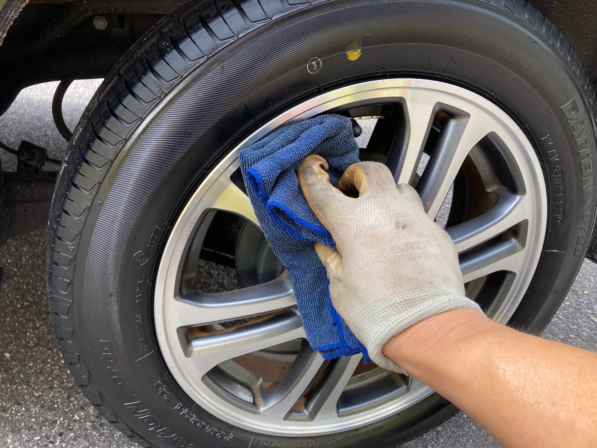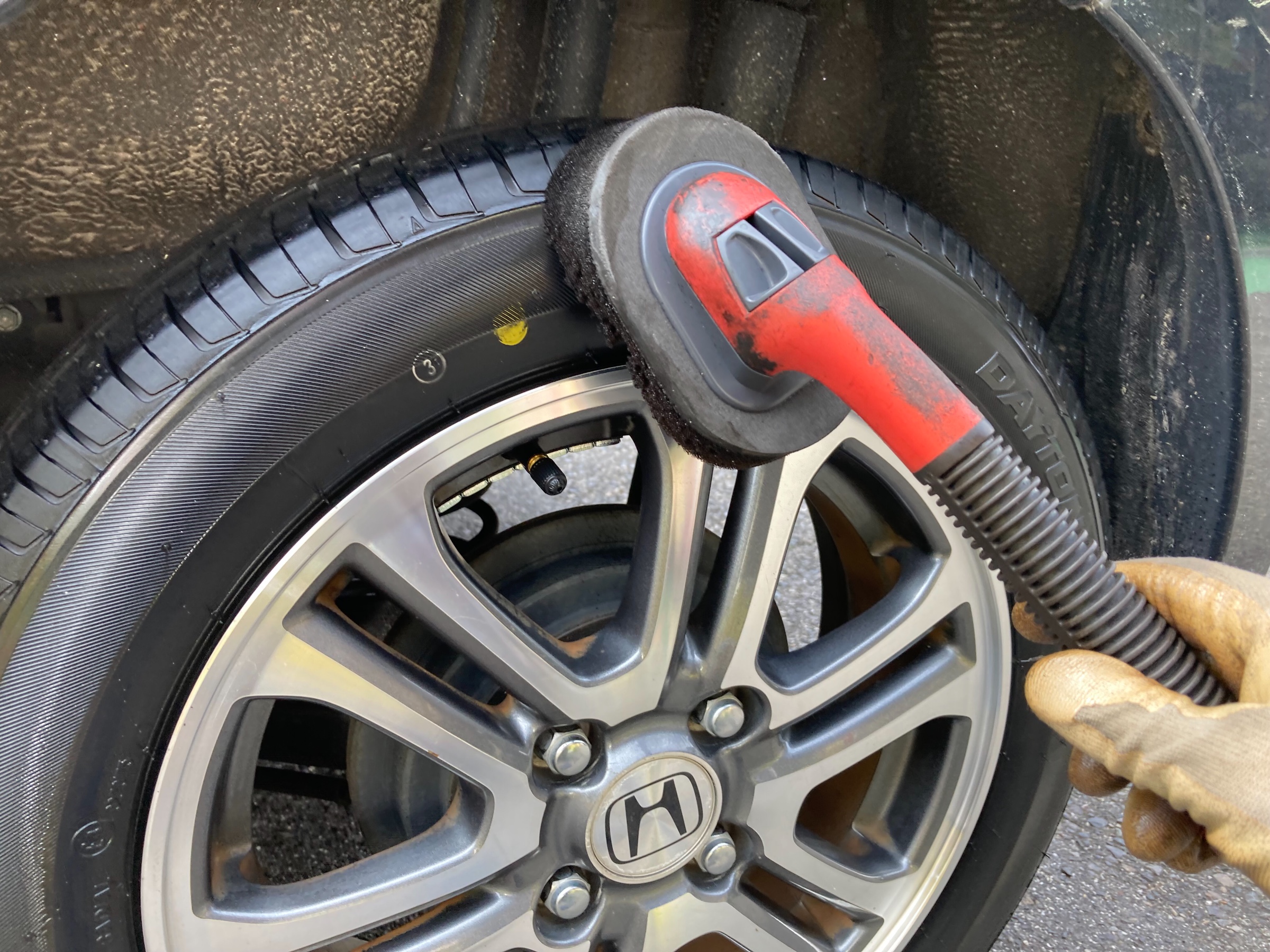 ↓ タイヤワックスをタイヤのサイド部に塗って