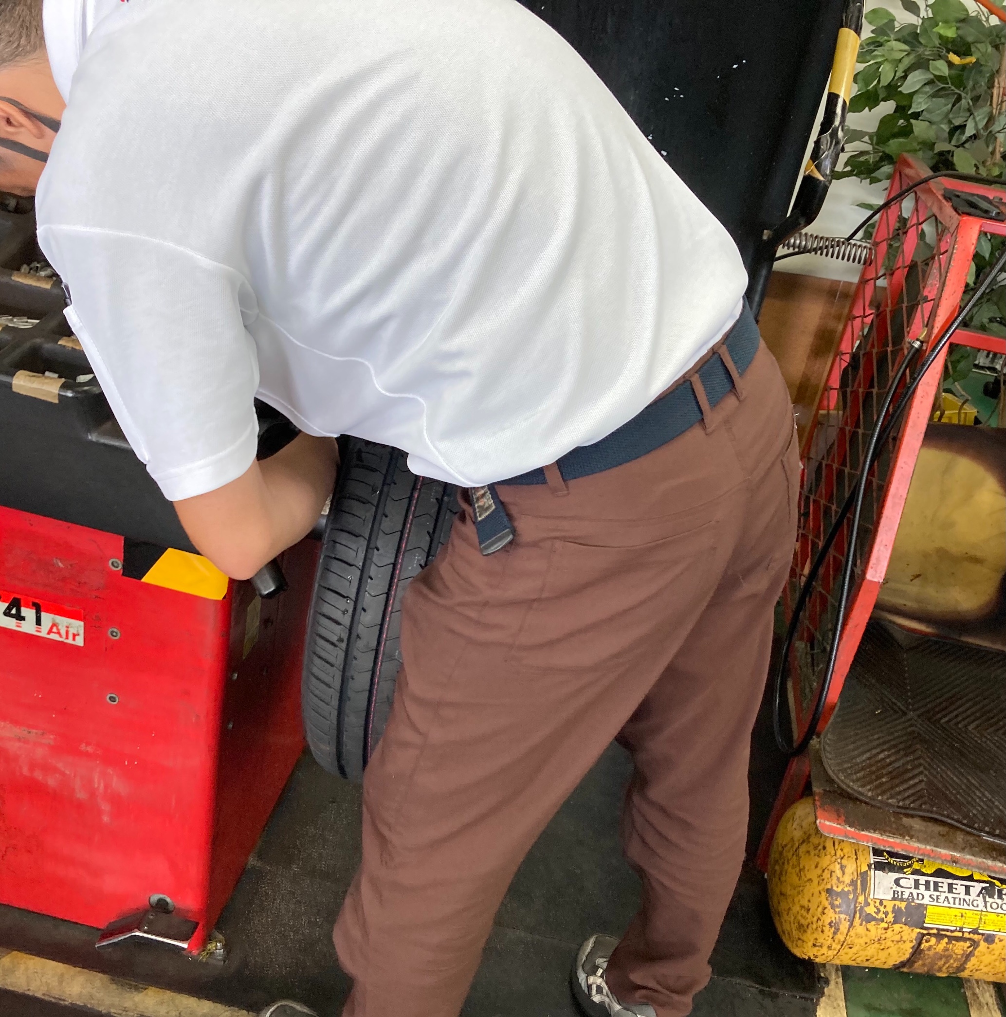 ↓ ホイールから古いタイヤを剥がし新品タイヤを