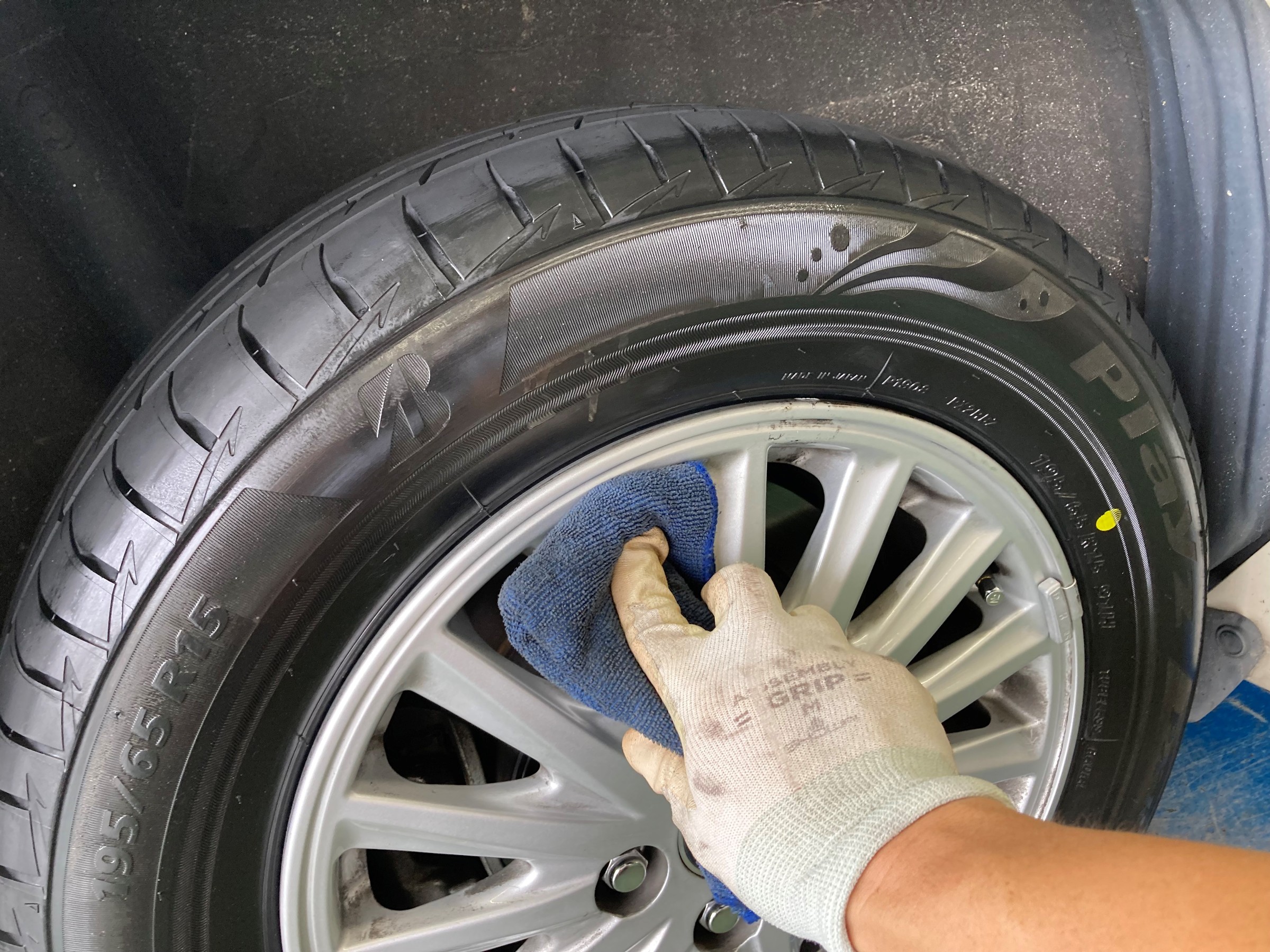 ↓ タイヤワックスをタイヤのサイド部に塗って