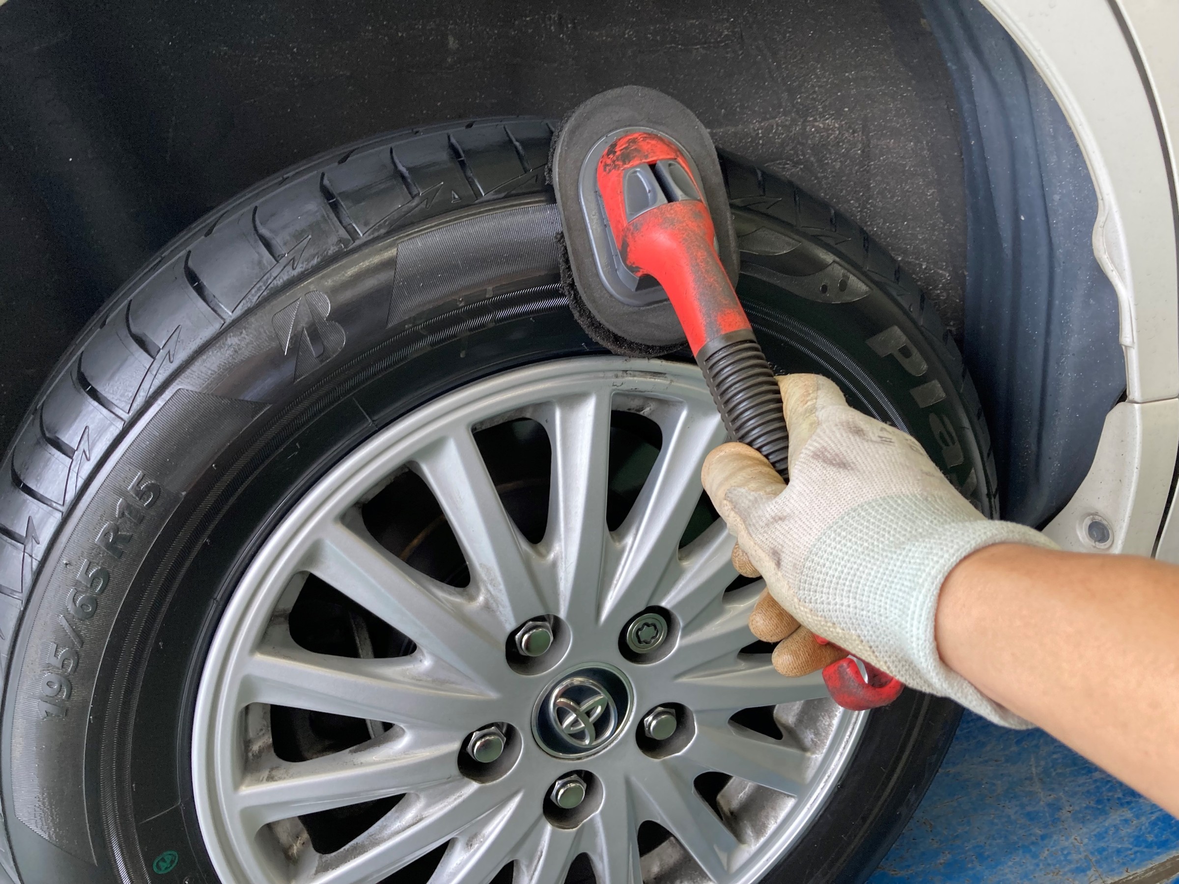 タイヤサイド部にタイヤワックスを塗って