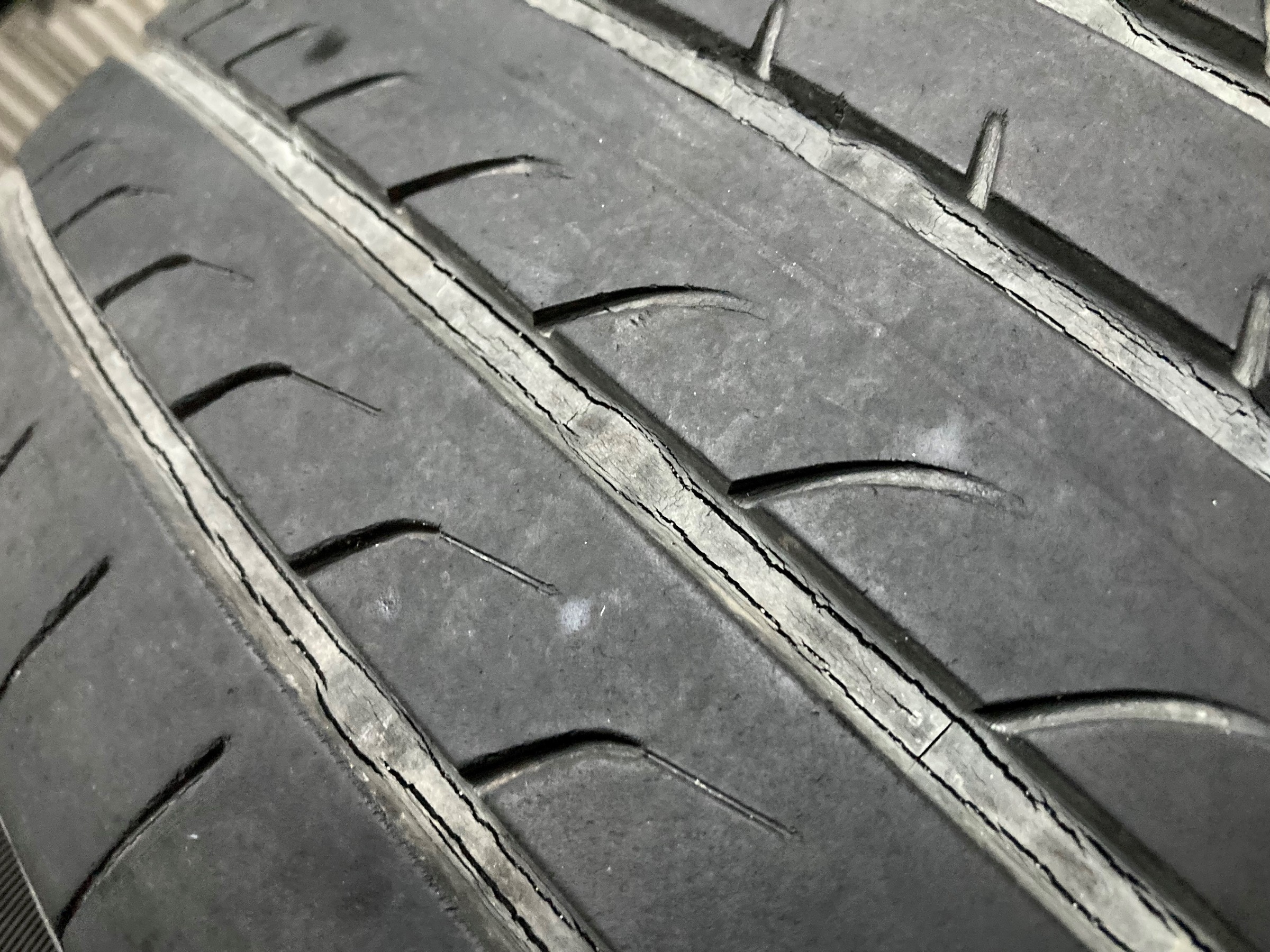 タイヤミゾに線状のひび割れが見られます。