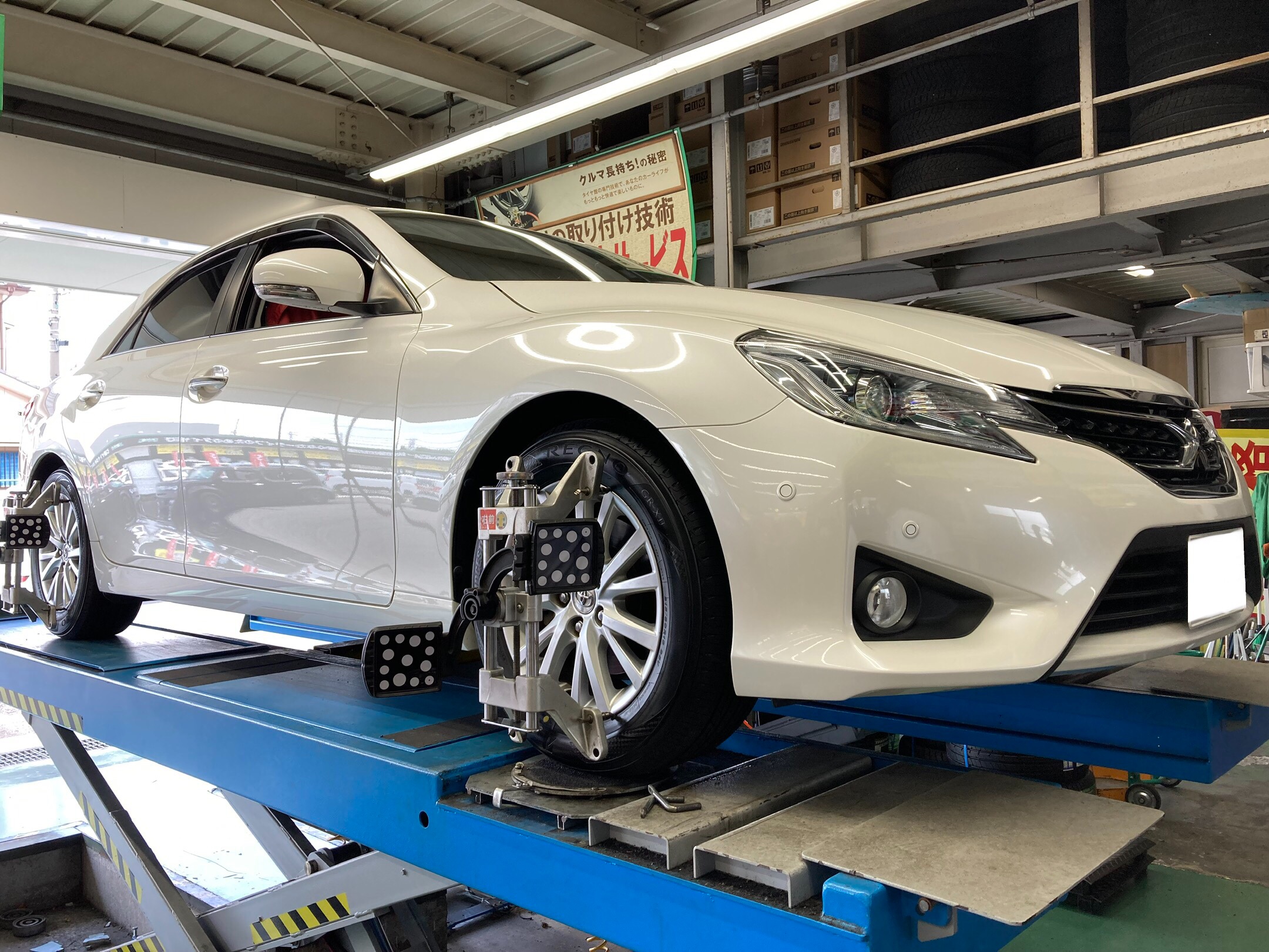 タイヤ交換作業+アライメント調整作業 トヨタ・マークX