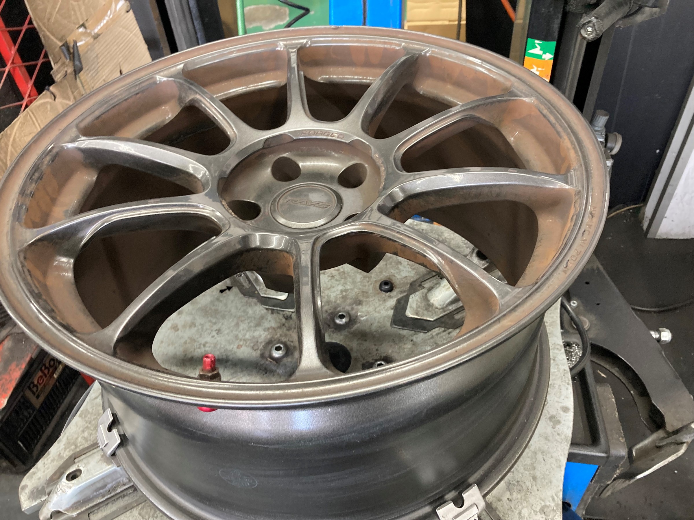 ↓ ホイールから古いタイヤを剥がし新品タイヤを