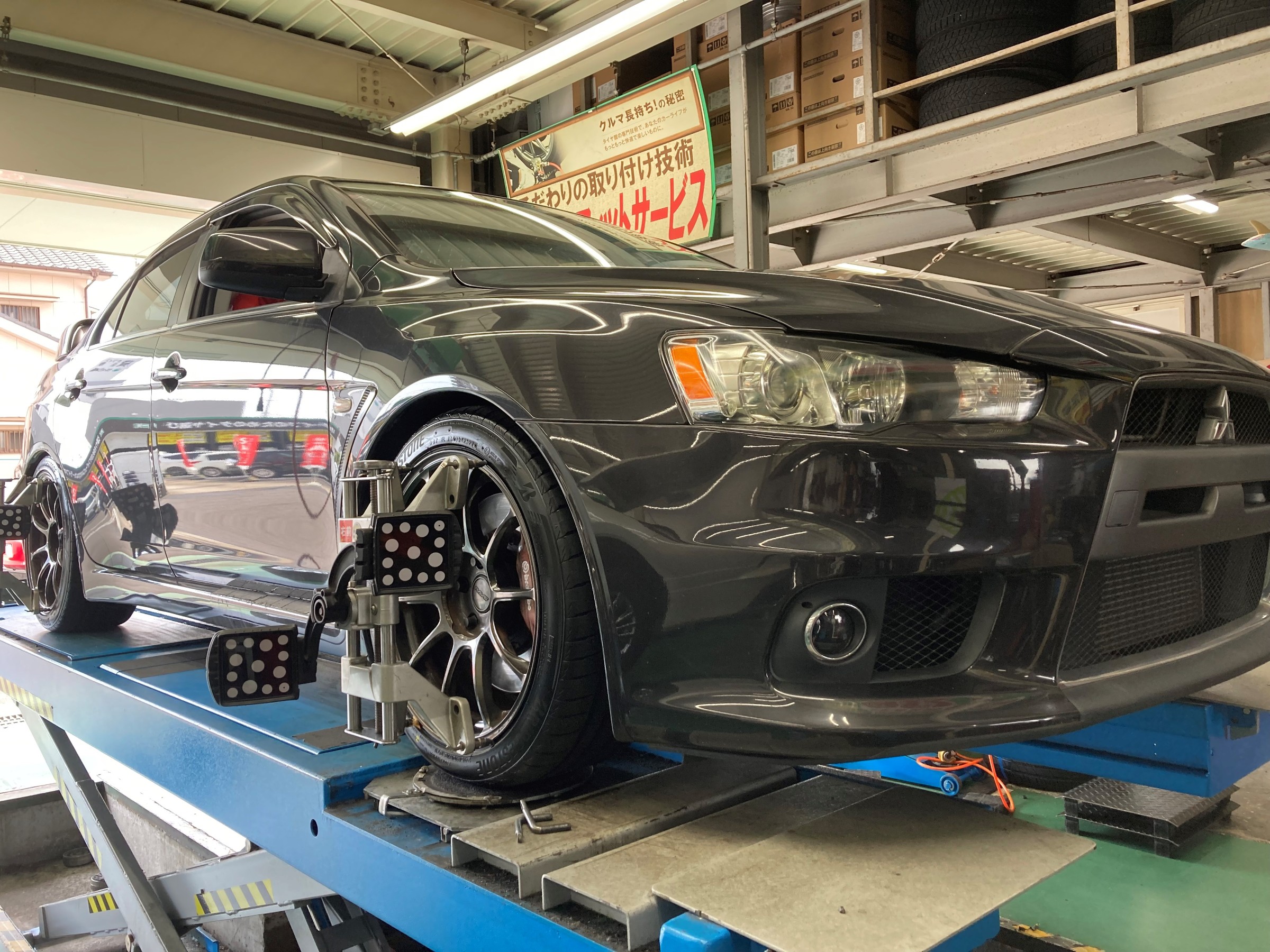 タイヤ交換作業+アライメント調整作業 三菱・ランサーエボリューションX