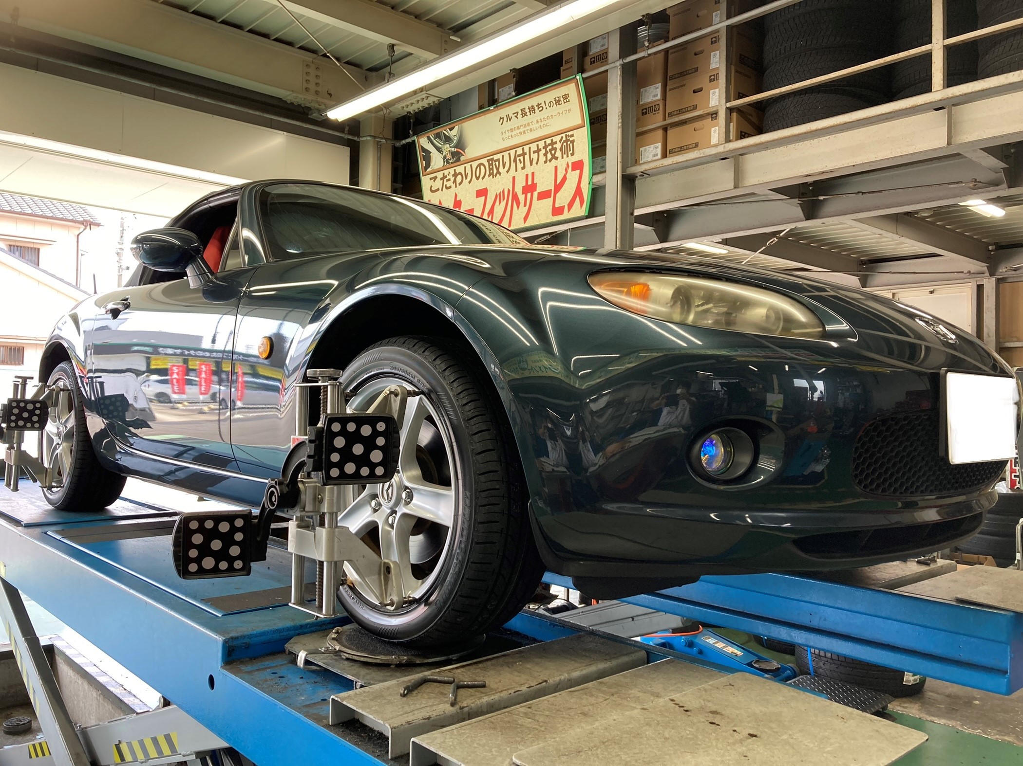 タイヤ交換作業+アライメント調整作業 マツダ・ロードスター