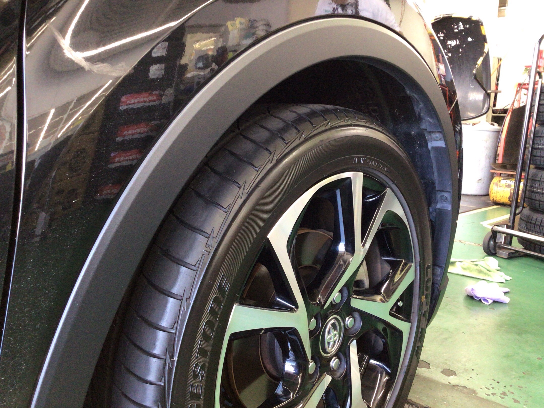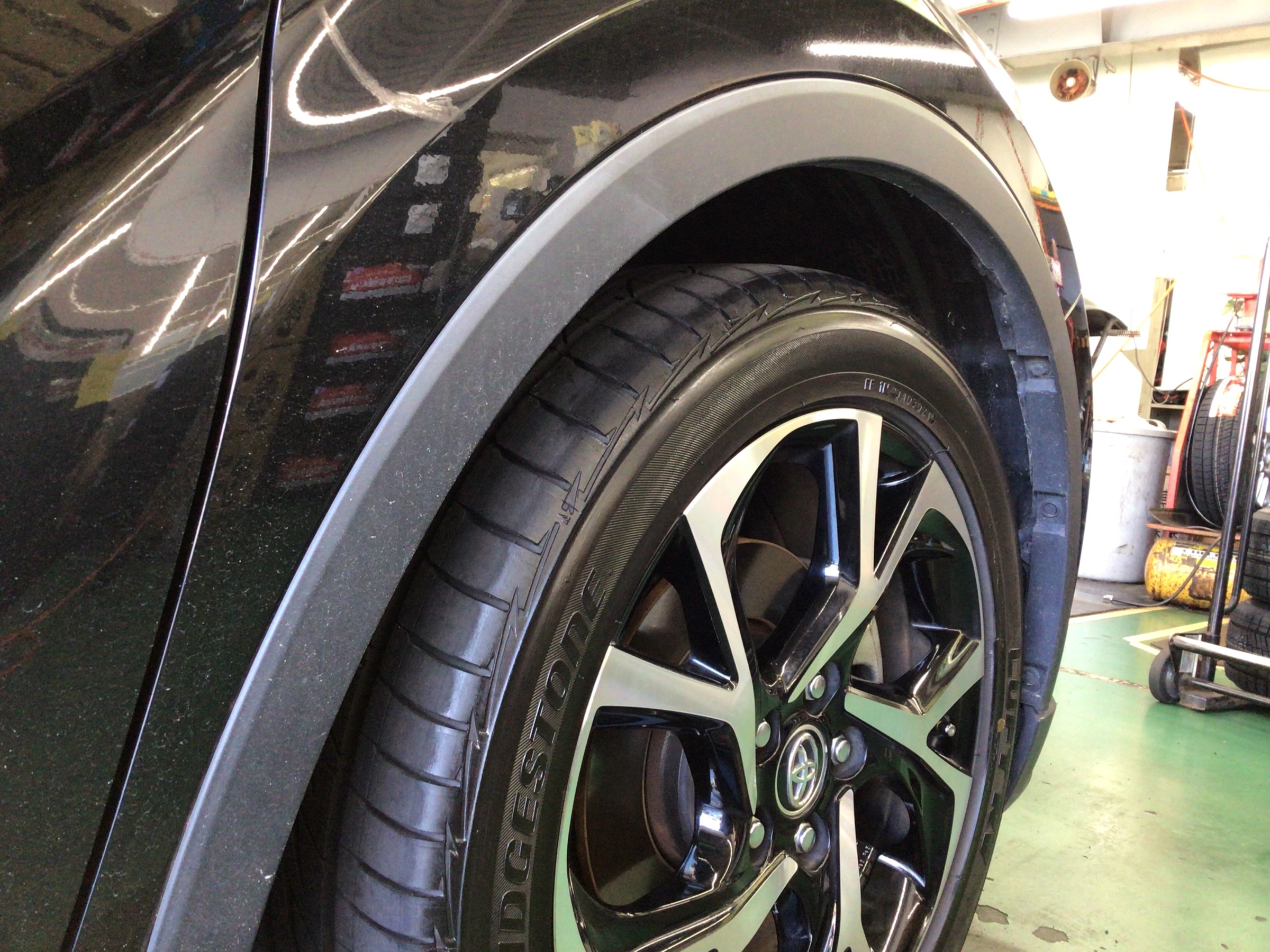 タイヤ館安城店では、黒艶を復活させる