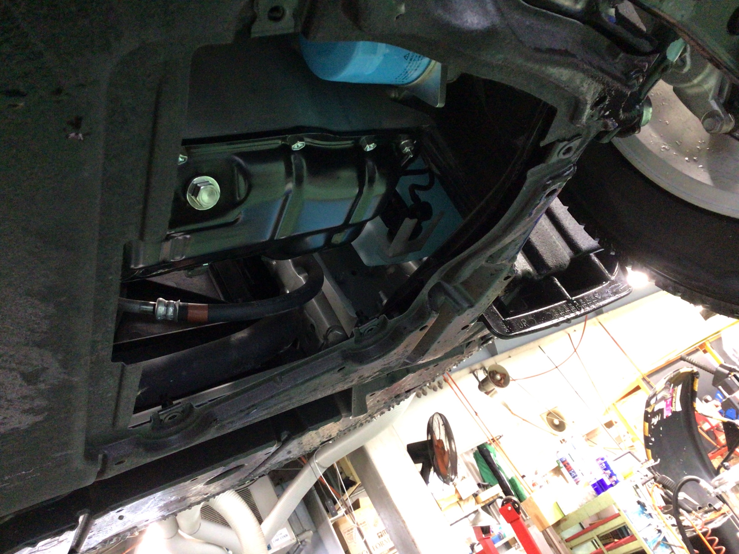 クルマをリフトで持ち上げクルマの下のアンダカバーを外してオイル・オイルエレメントを交換します。