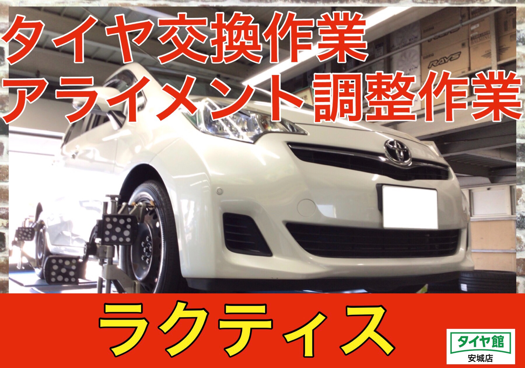 タイヤ交換作業(ブリヂストン レグノGR–XⅡ)+アライメント調整作業 トヨタ・ラクティス