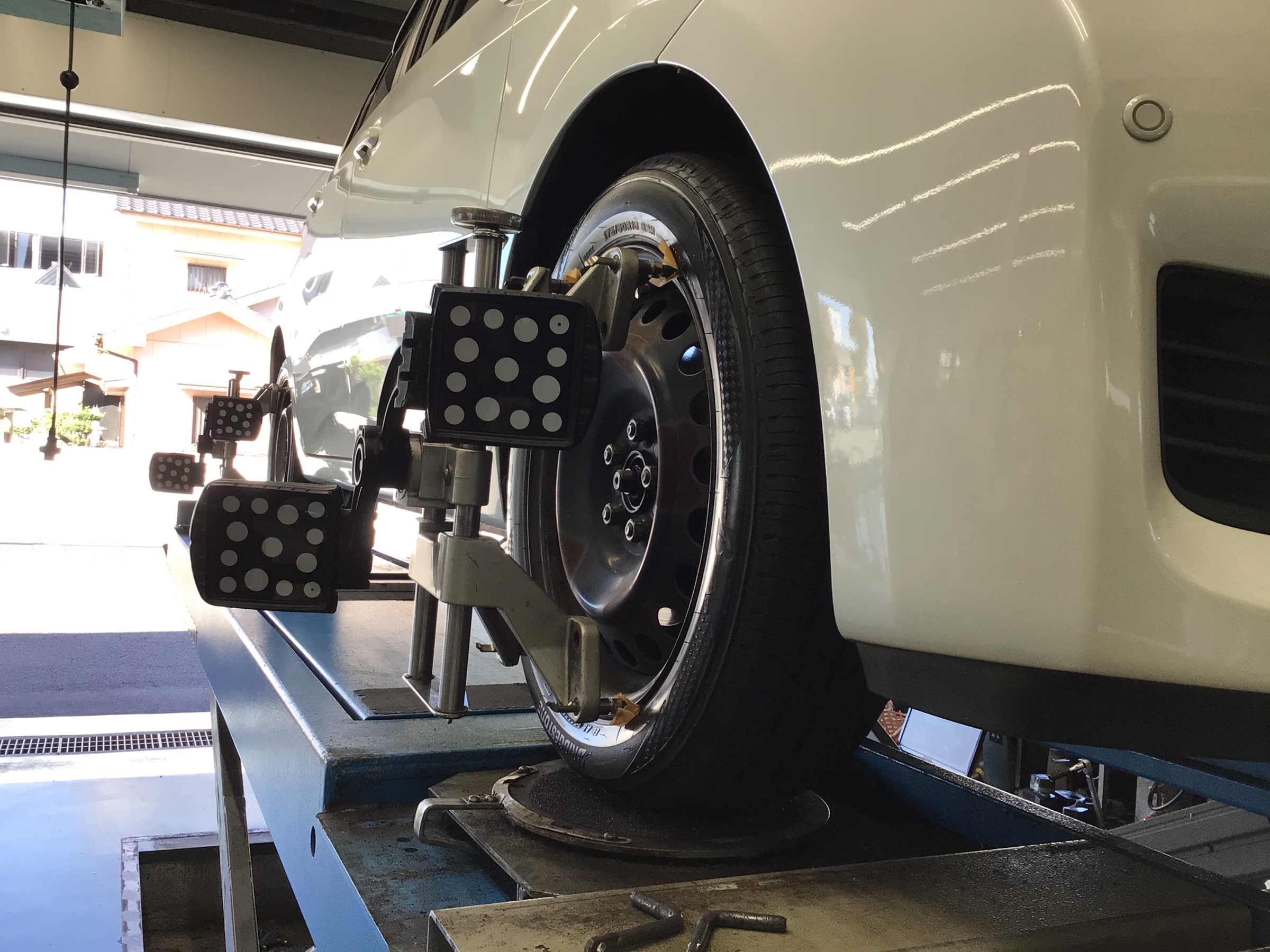 タイヤの寿命を延ばしたり、走行の安定さを向上させたりする作業:「アライメント調整作業」も同時に実施させていただきました。