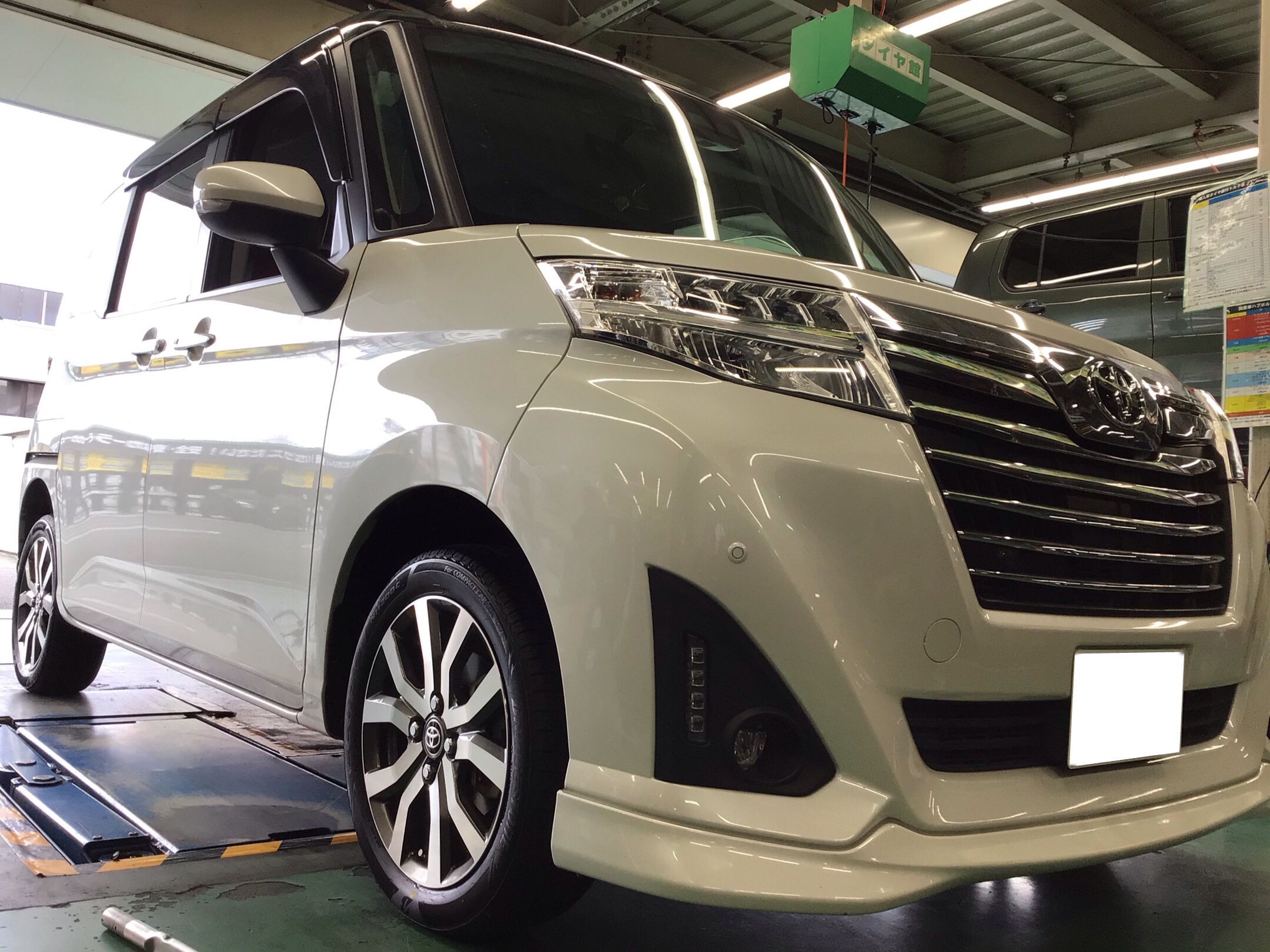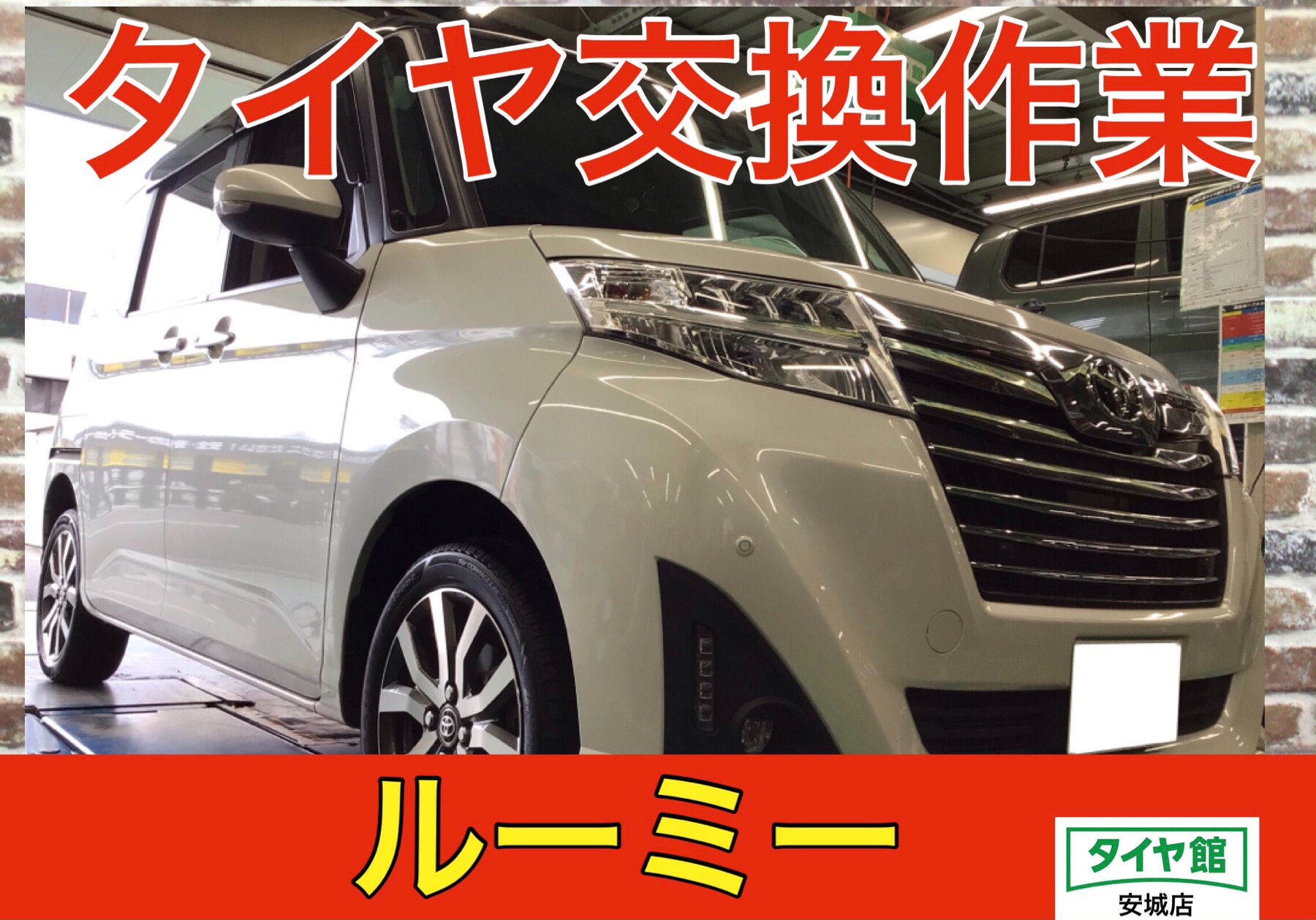 ルーミーのタイヤ交換作業です。ルーミーのタイヤサイズは、グレードによって異なりますので。現車のタイヤ側面のタイヤサイズをご確認ください。「165/65R14」と「175/55R15」の2種類があります。タイヤ館安城店はルーミーのタイヤ交換のご依頼を多くいただいておりますのでタイヤの在庫も豊富です。ルーミーのタイヤ交換ならタイヤ館安城店にお任せください。