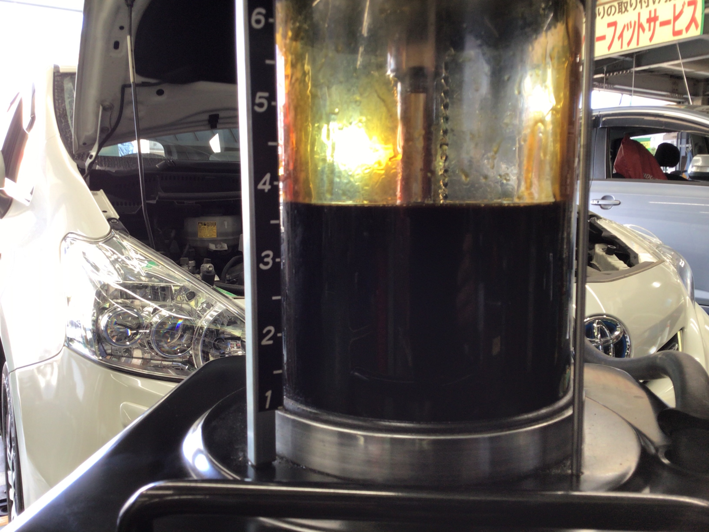 ちなみに新品のオイルはキレイな琥珀色をしていますのでいかに汚れているかがわかりますね。