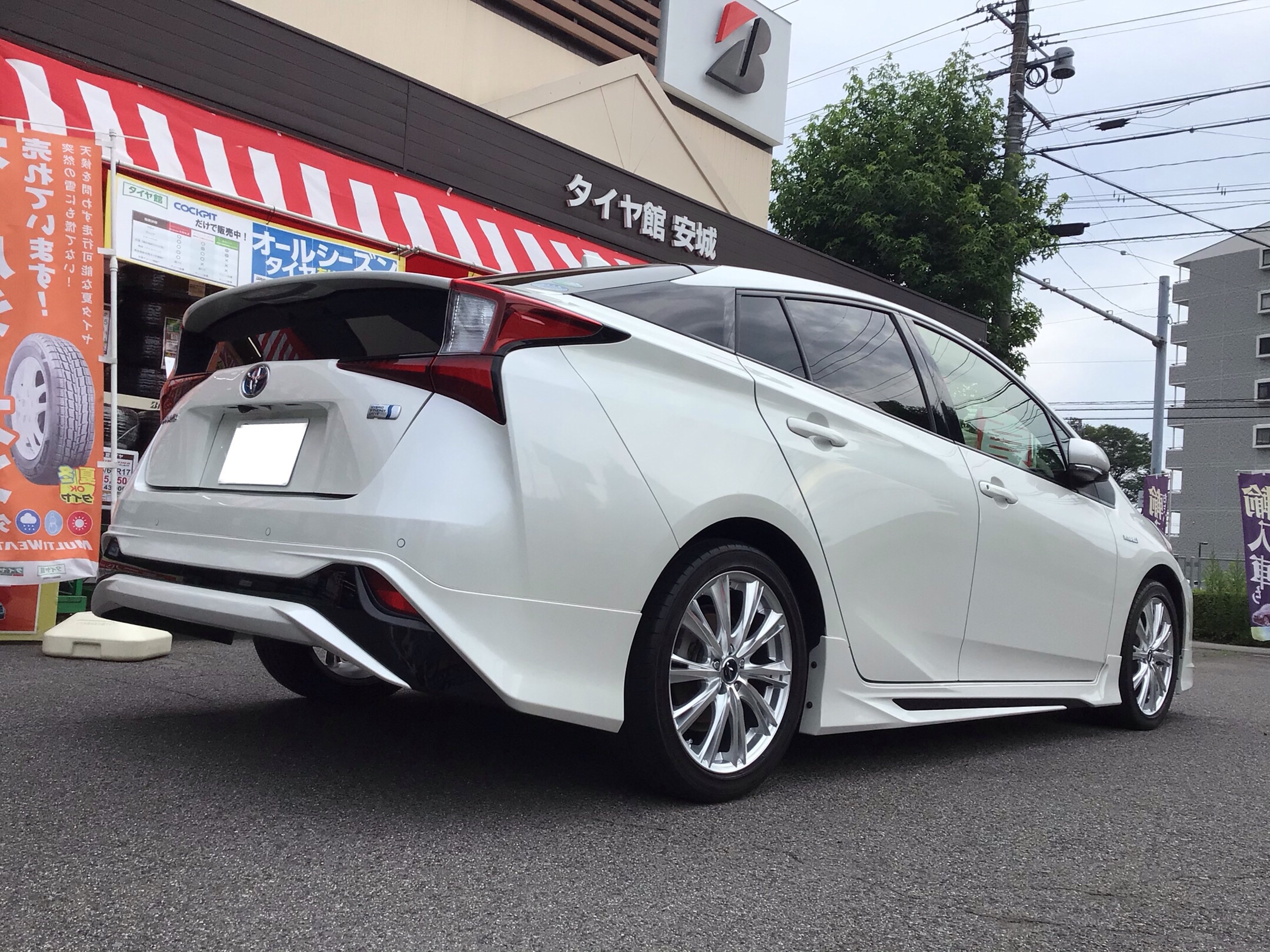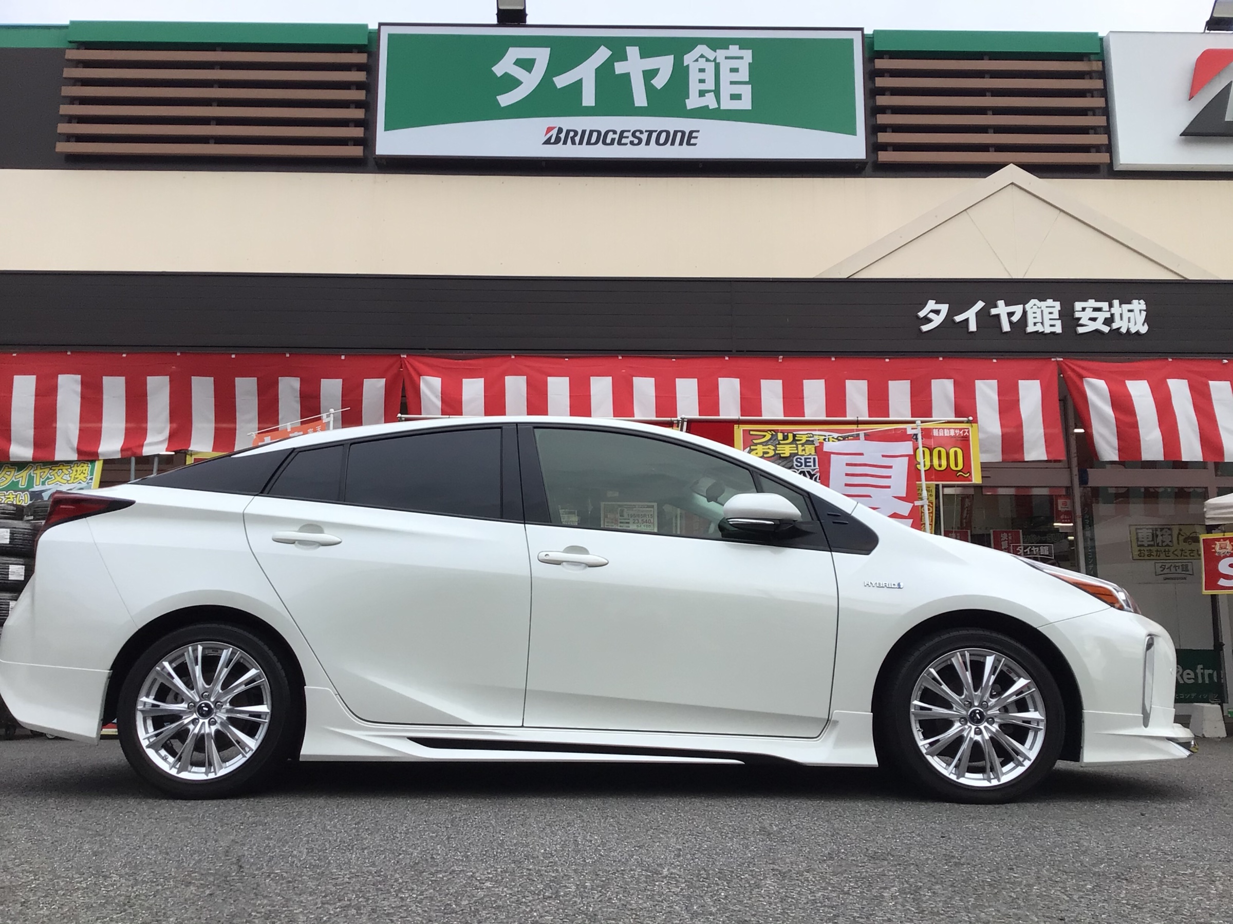 今回装着させていただいた「プリウス」に、このホイールを装着する際には、取付けナットはトヨタ純正ナット(平面座ナット)は対応していないため「60°テーパーナット」を別途ご用意する必要があります(純正アルミホイール装着の場合)。「60°テーパーナット」はタイヤ館安城店で販売していますのでナットの交換が必要な場合はご商談時にご案内させていただきます。