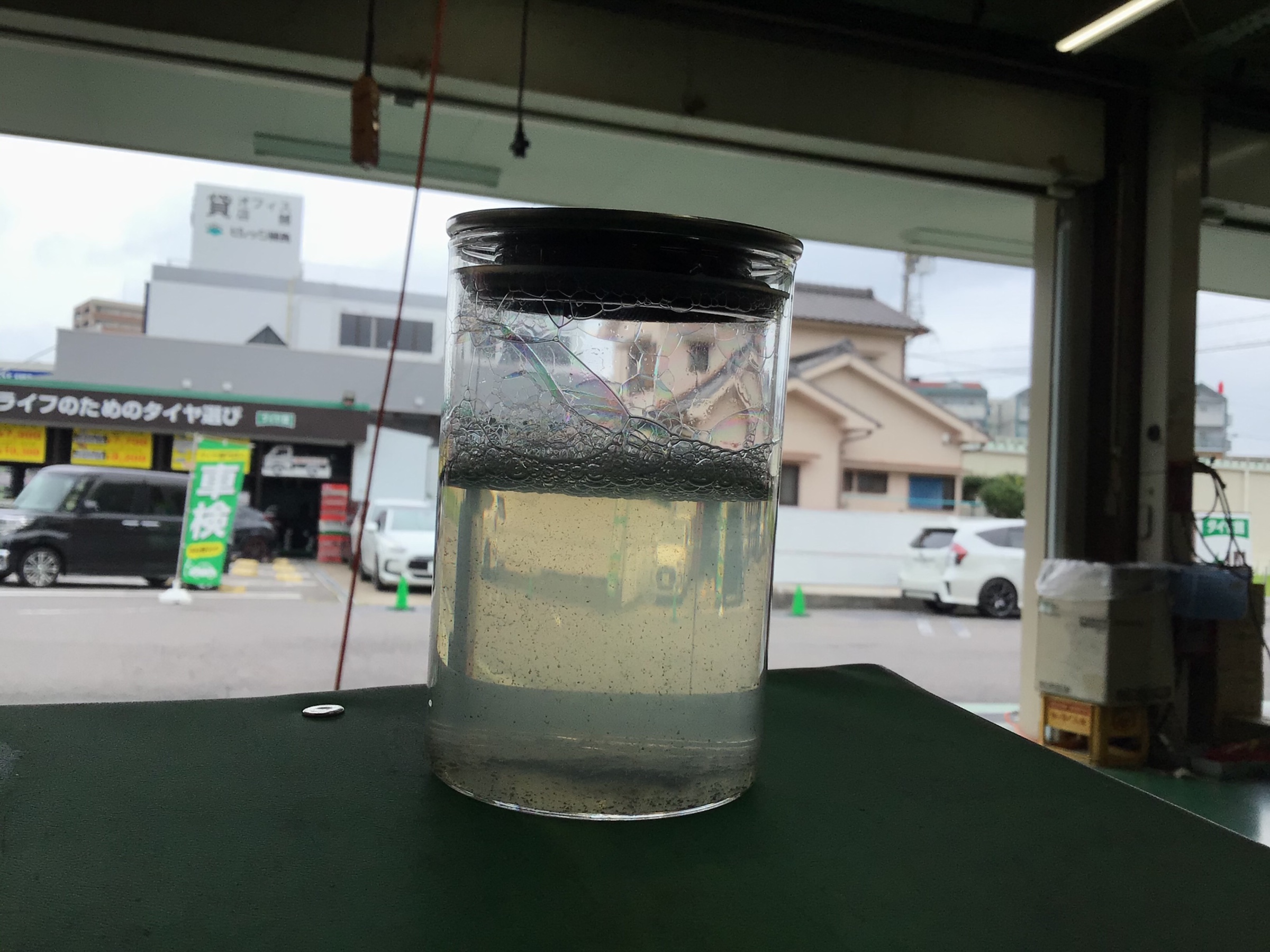 透明な洗浄液が使用後は濁ってしまいました。エバポレーターがかなり汚れていたことが伺えます。