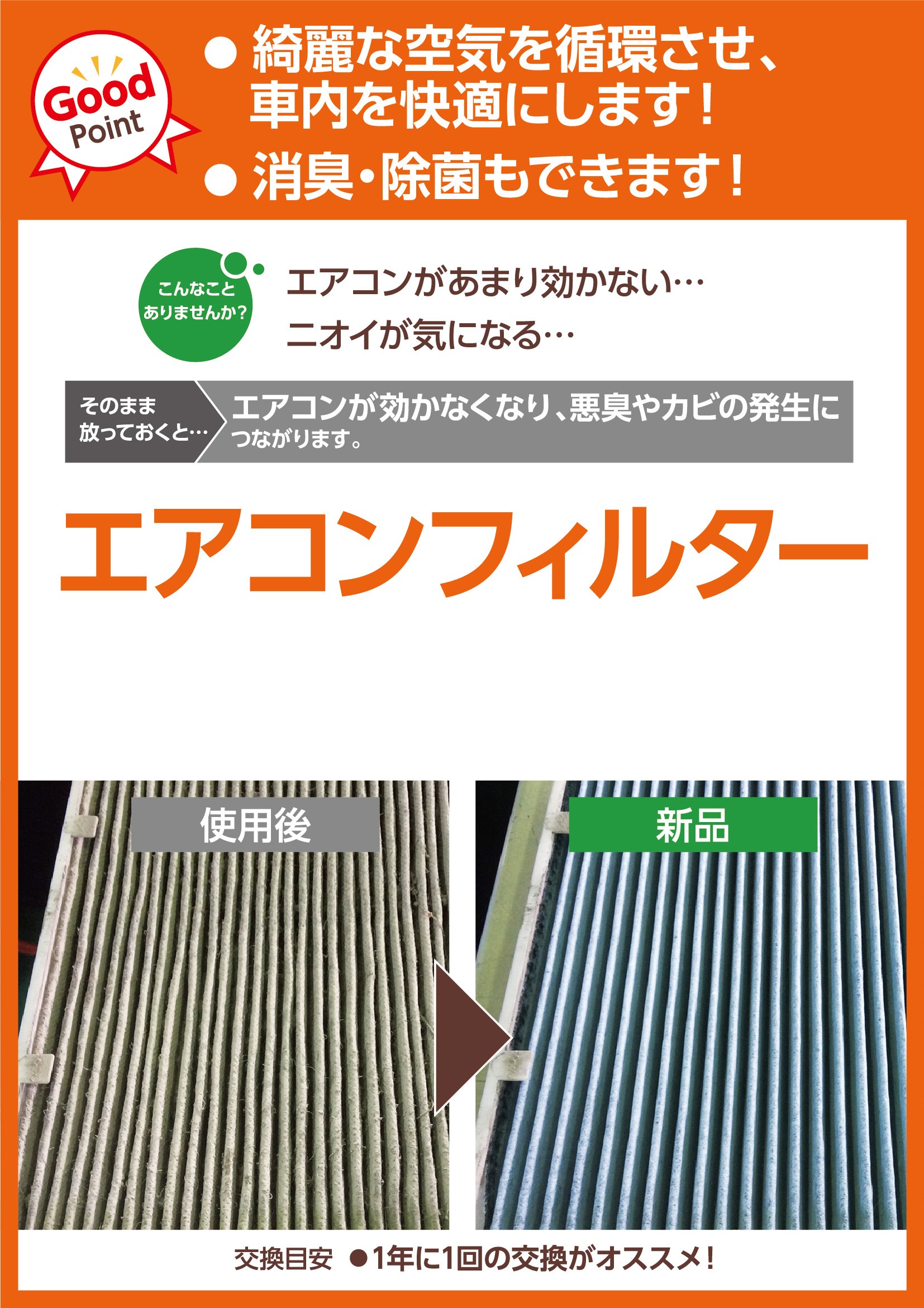 【エアコンフィルター】燃費向上に効果的! 花粉にも効果的! 抗菌作用もアリ!