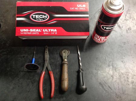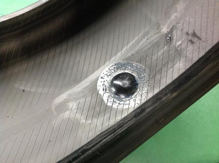 ほとんどのパンク修理はタイヤを外さずに外面から修理をしますが、