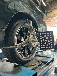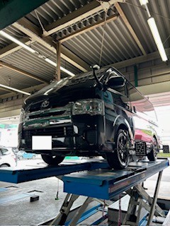 ドレスアップ バン用タイヤ GL-Rを200ハイエースに装着しアライメント調整いたしました。