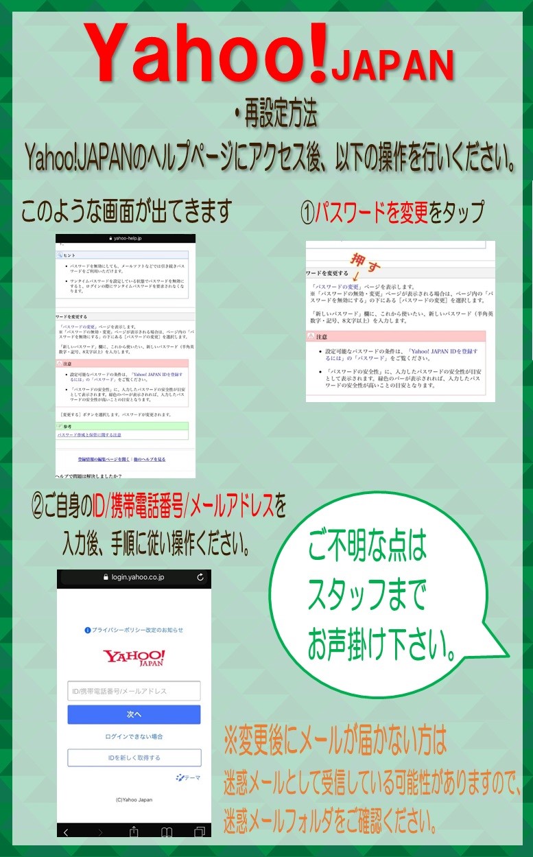 ご不明な点がございましたらお手数ですがご来店の際にスタッフまでお声掛けください。