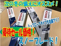 いつも当店ホームページをご覧いただきありがとうございます♪ このままゆっくり春を迎えるのかと思った矢先にまたまたの降雪・・・ 積もらないことを祈るばかりです。。。 そこで、思い出したかのように冬の必需品のご案内です(^^♪ BOSCH製 スノーブレード 「もう冬ワイパーの季節は終わりだよ~」 ...