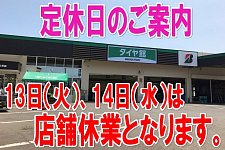 ☆ 定休日のご案内 【14日は臨時休業となります】☆