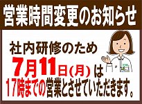 【重要なお知らせ】11日は社内研修の為営業時間が変更となります