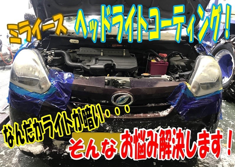 いつも当店ホームページをご覧いただきありがとうございます♪ 当店人気No.1のヘッドライトコーティング おかげさまでタイヤ交換シーズンでも たくさんのお客様よりご用命いただきました♪ 同時に2台施工という場面も(^O^)/ 仕上げにガラス系コーティングを塗布します♪ 施工時間はおよ30~40分...