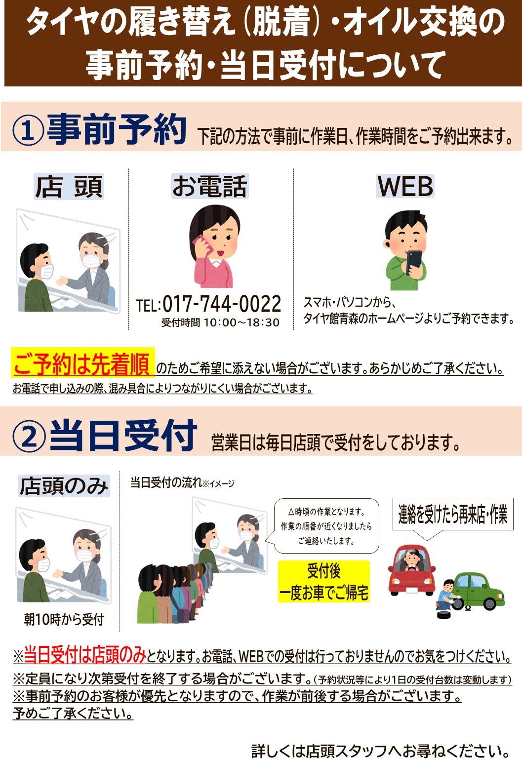 いつも当店をご利用いただき誠にありがとうございます。 春の足音が近づくにつれ、当店でもタイヤ履き替えでご来店されるお客様も増えて参りました。 つきましては、タイヤ履き替え事前予約・当日受付についてご案内いたします。 ご予約は店頭、電話、WEBにて受け付けております。 先着順なので早め...