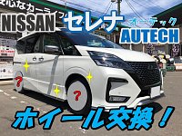 まいどさまです! いつも当店ホームページをご覧いただきありがとうございます! 今回は新車の「セレナ オーテック仕様」のホイール交換のご紹介です♪ マイナーチェンジ後のセレナ オーテック仕様は生で見るのも入庫するのも初めてデス! 同じセレナオーナーの小林店長も興味津々のご様子でした(*^...