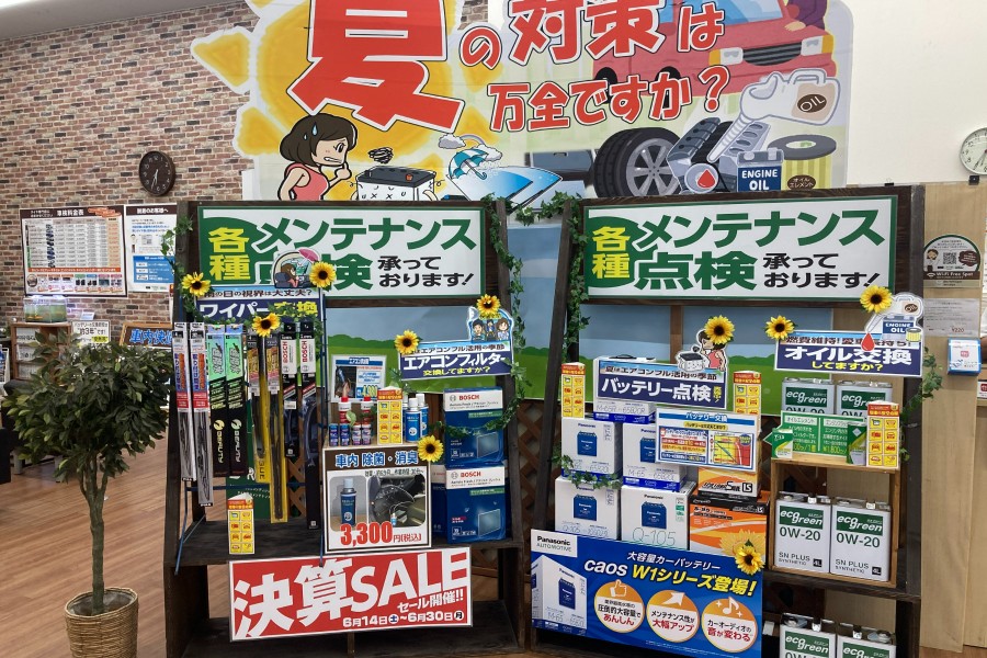 オイル、バッテリーなどのメンテナンス用品も取り扱っています。