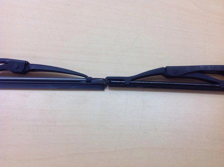 向かって左のワイパーが正常で、右がゴム切れを通り越して