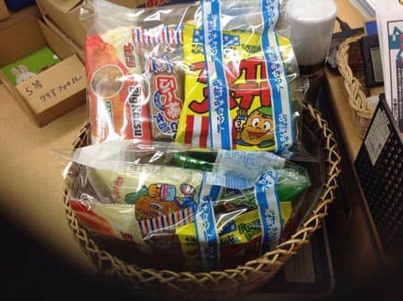写真にある、ヨーヨーとお菓子の詰め合わせを