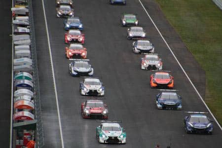 このレースはGT500クラスとGT300クラスという二つのクラスの車が同時に同じコースの中で速さを競います。
