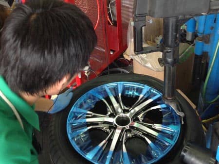 今日は空いた時間に予約いただいてたタイヤとホイールを組んでました~。